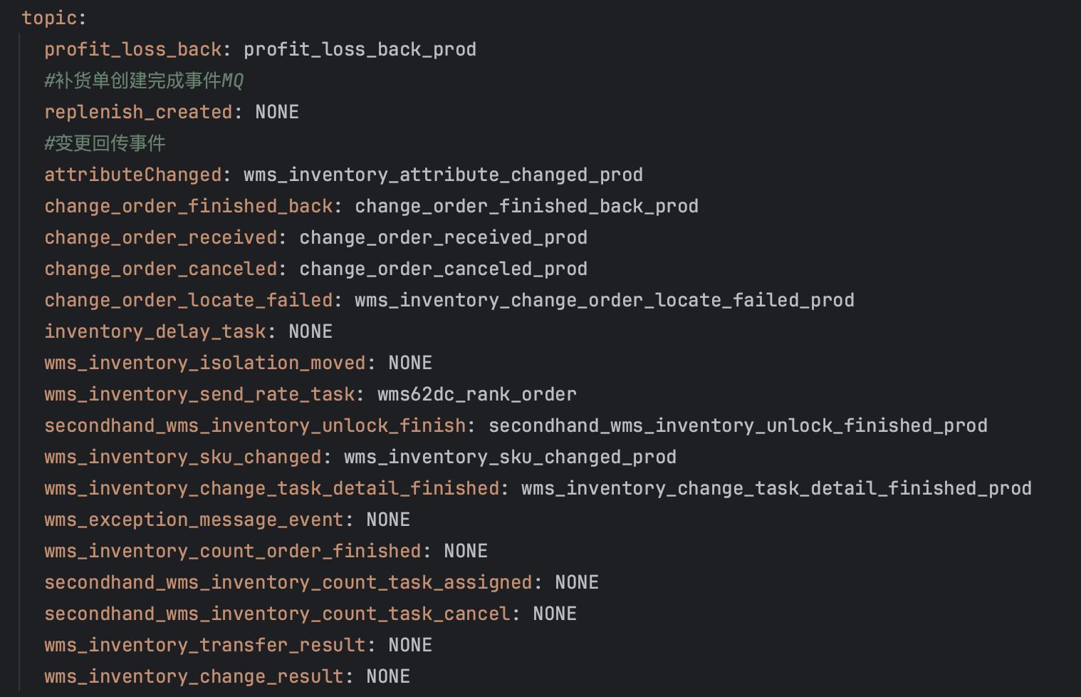 在盘点的yml中,只保留盘点相关的TOPIC,其他置为NONE。