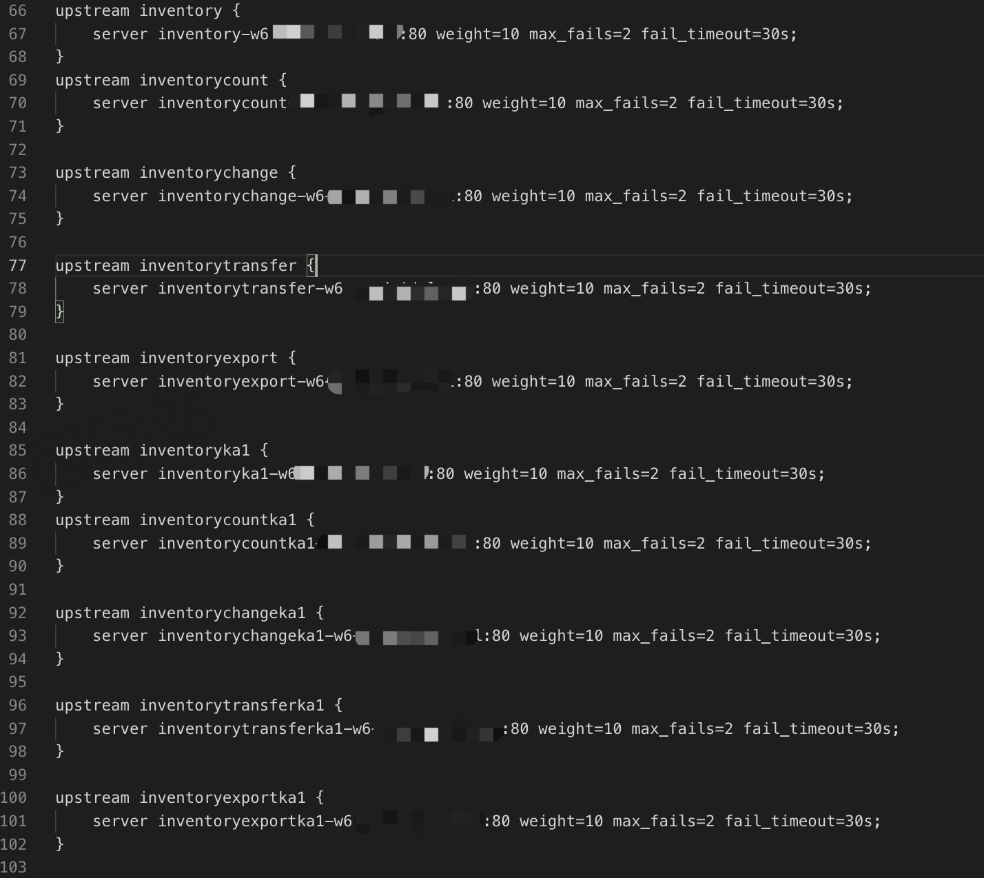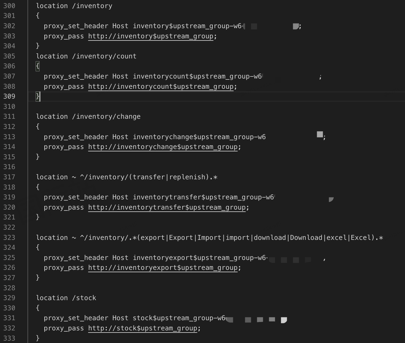 拆分upstream,按照不同域RESTful方法的规则进行路由拆分配置。