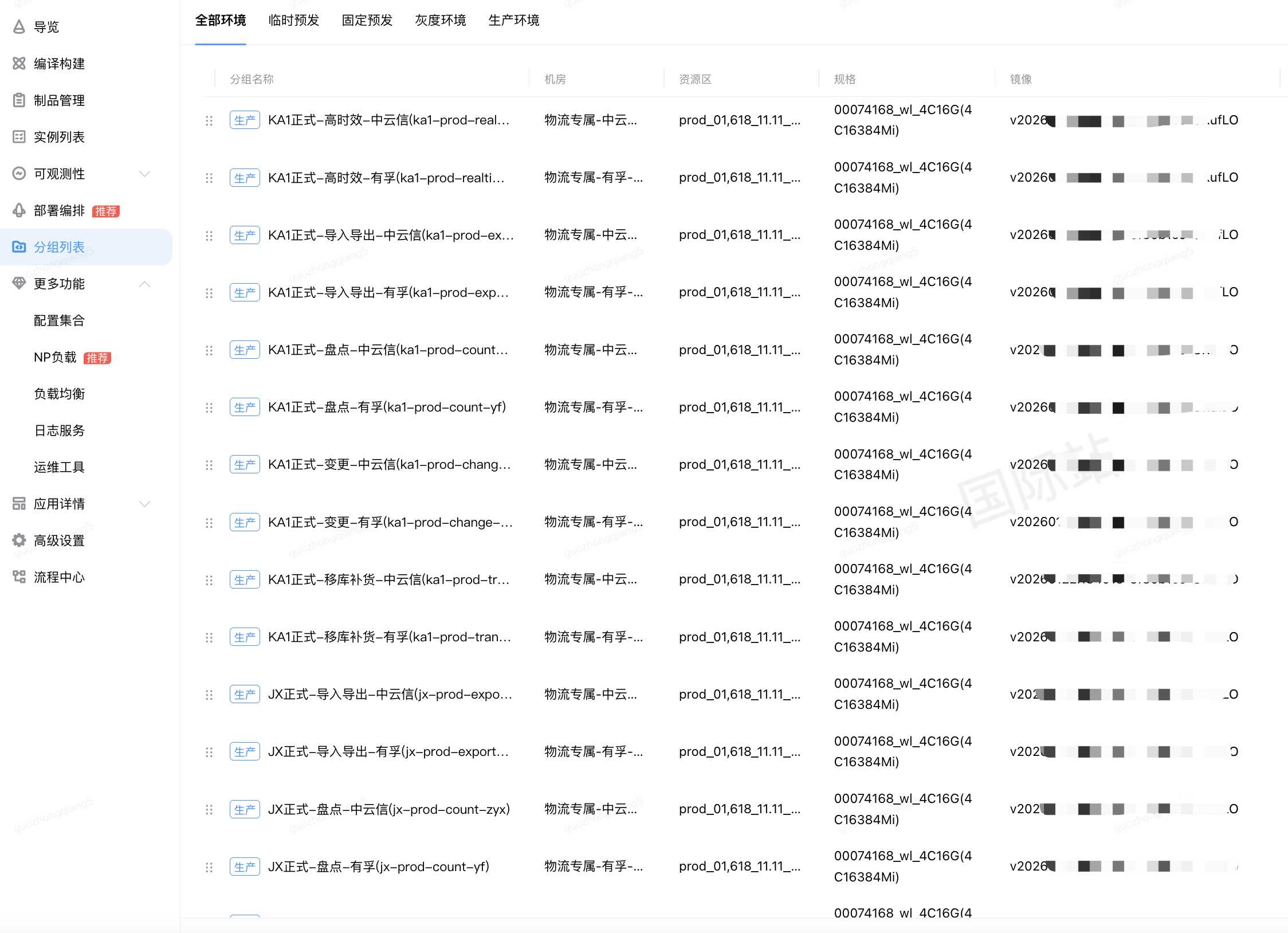 以在库为例,为盘点、补货、变更等创建不同的业务分组,当然处于高可用考虑,会为盘点、补货、变更等每个业务分组,又会横跨多个机房分组,不如中云信机房分组、有孚机房分组。